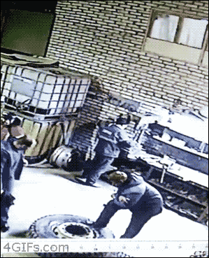 Опасная работа на шиномонтаже.